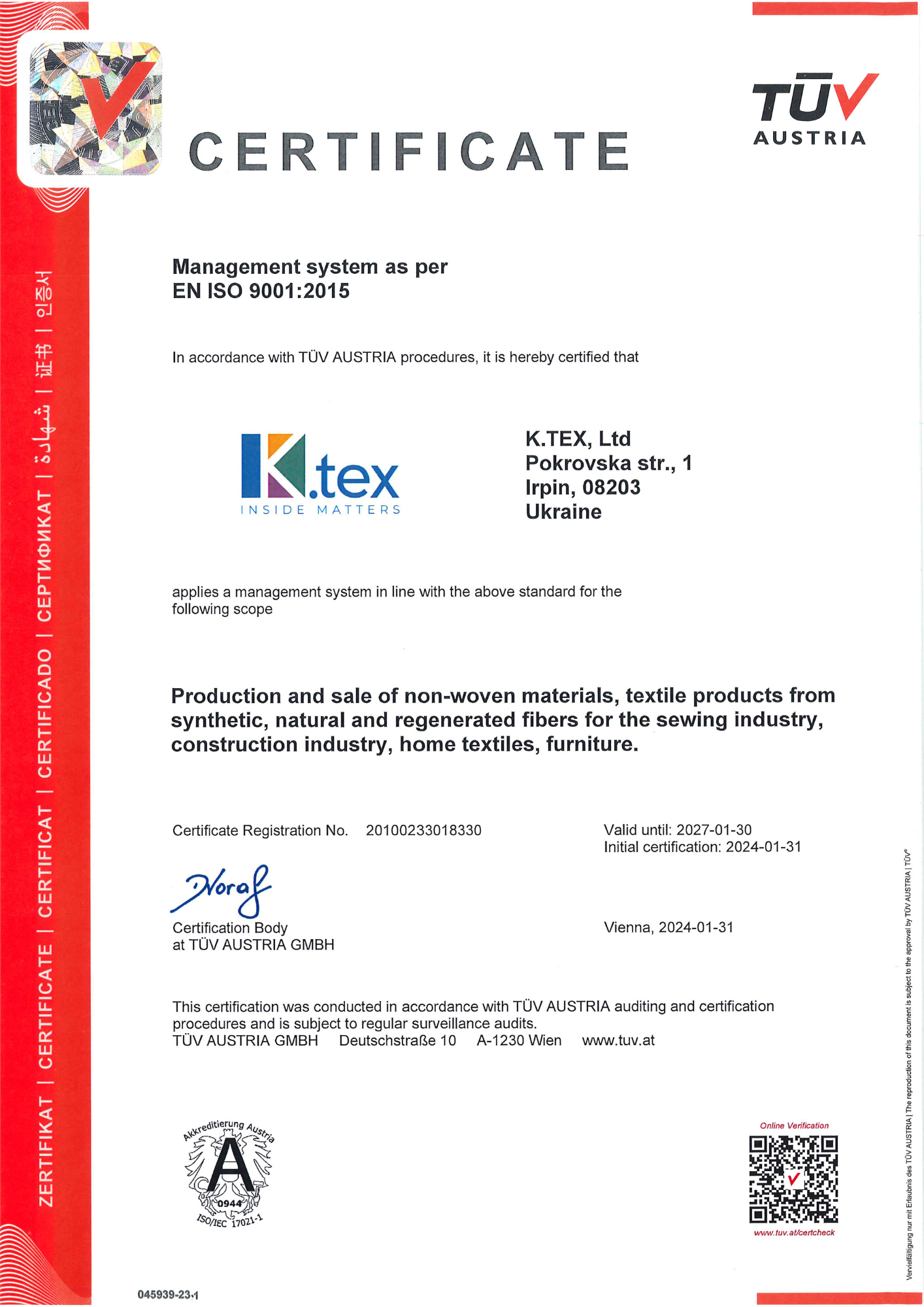 We are grateful to every employee of K.TEX LLC, whose daily work has made this achievement possible. Special thanks to all those who supported us along the way: the team of international consultants in the EBRD SME support project “Advice for Small